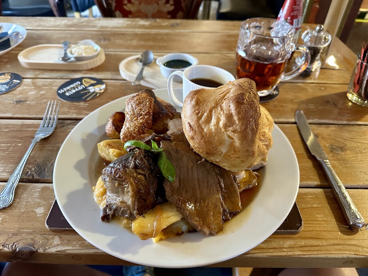 After reading a bad review of this place, followed by an absolutely hilarious and solid reply, we decided to head over to this place for Sunday dinner. Met with lovely service, even some very welcome light hearted banter, we were welcomed into a beautiful and authentic old pub, oak beams and open fire the lot. Got there pretty late, schoolboy error as only had Roast pork left. Wasn't disappointed at all, lovely cosy pub roast, great homely atmosphere. So seems a bad review has earned this place new and future repeat customers.